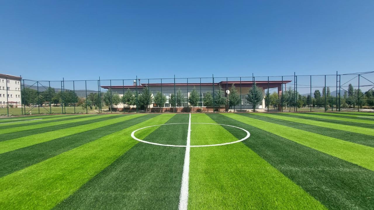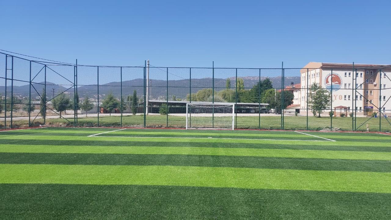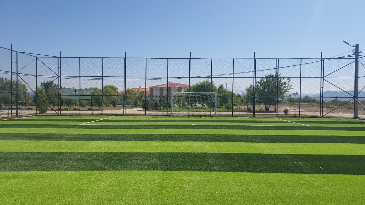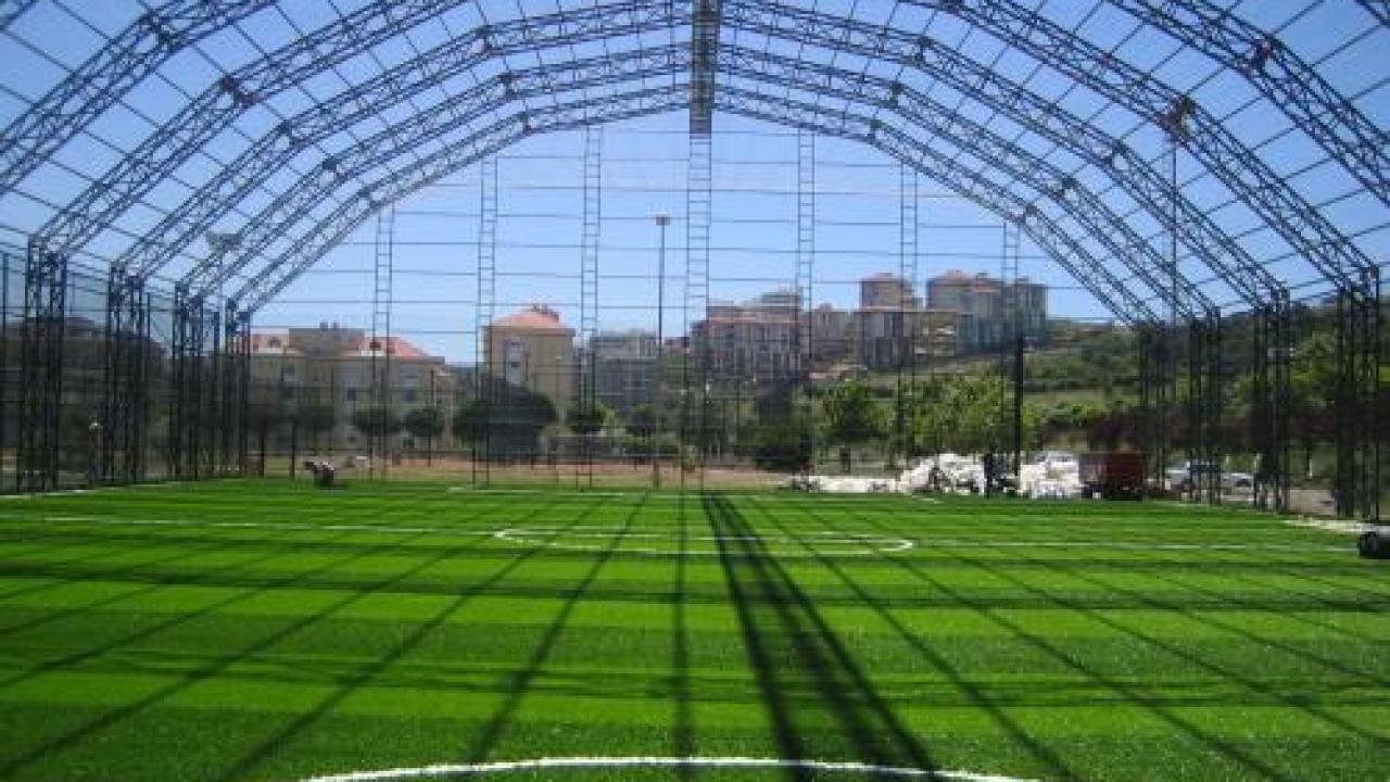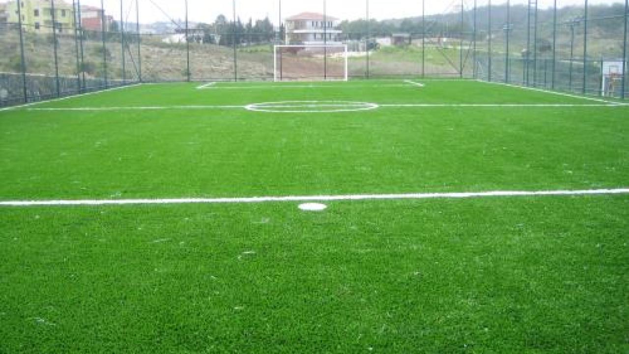 Hazırlanan dolgu zemin üzerine, komple sahayı kaplayacak şekilde jeotekstil taban malzemesi (keçe) serilir. Bunun üzerine, tercih edilen 40 mm / 50 mm / 55 mm hav yüksekliğindeki sentetik çim halı; özel yapıştırıcı kullanılarak ve helmetsin bezi ile birlikte zemine serilerek montajı yapılır.