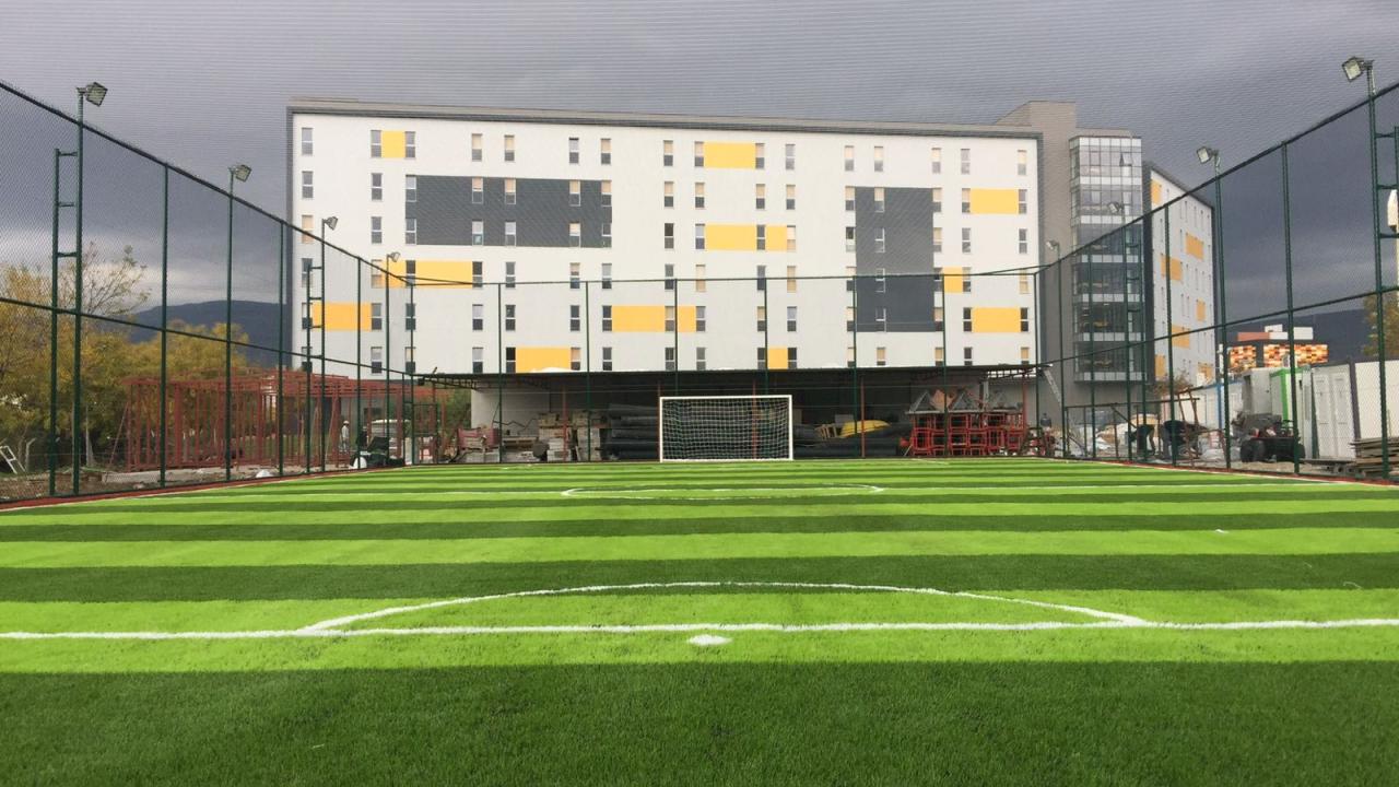 Montajı tamamlanan çim halının üzerine ortalama 28–30 kg/m⊃2; özel kuvars kum serilir. Serilen kumun üzerine ise ortalama 8–9 kg/m⊃2; siyah LSR lastik granül uygulaması yapılır. Son olarak futbol oyun çizgileri çizilerek saha teslim edilir.